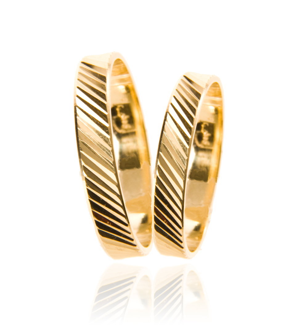 Poročna prstana krasi gravura, v kateri se posebno lepo lomi svetloba. Zagotovo spadata v kategorijo večne klasike, ki je vedno modna in s katero ne moreta zgrešiti. Obenem pa je pri njiju izjemno privlačna tudi cena. Prstani so izdelani iz rumenega zlata, možna pa je tudi izdelava v belem zlatu.