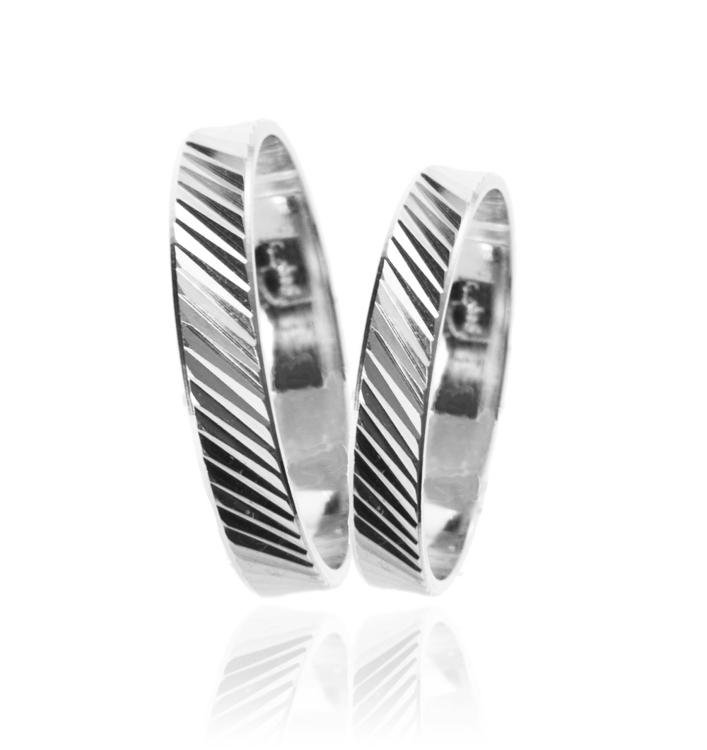 Poročna prstana krasi gravura, v kateri se posebno lepo lomi svetloba. Zagotovo spadata v kategorijo večne klasike, ki je vedno modna in s katero ne moreta zgrešiti. Obenem pa je pri njiju izjemno privlačna tudi cena. Prstani so izdelani iz rumenega zlata, možna pa je tudi izdelava v belem zlatu.