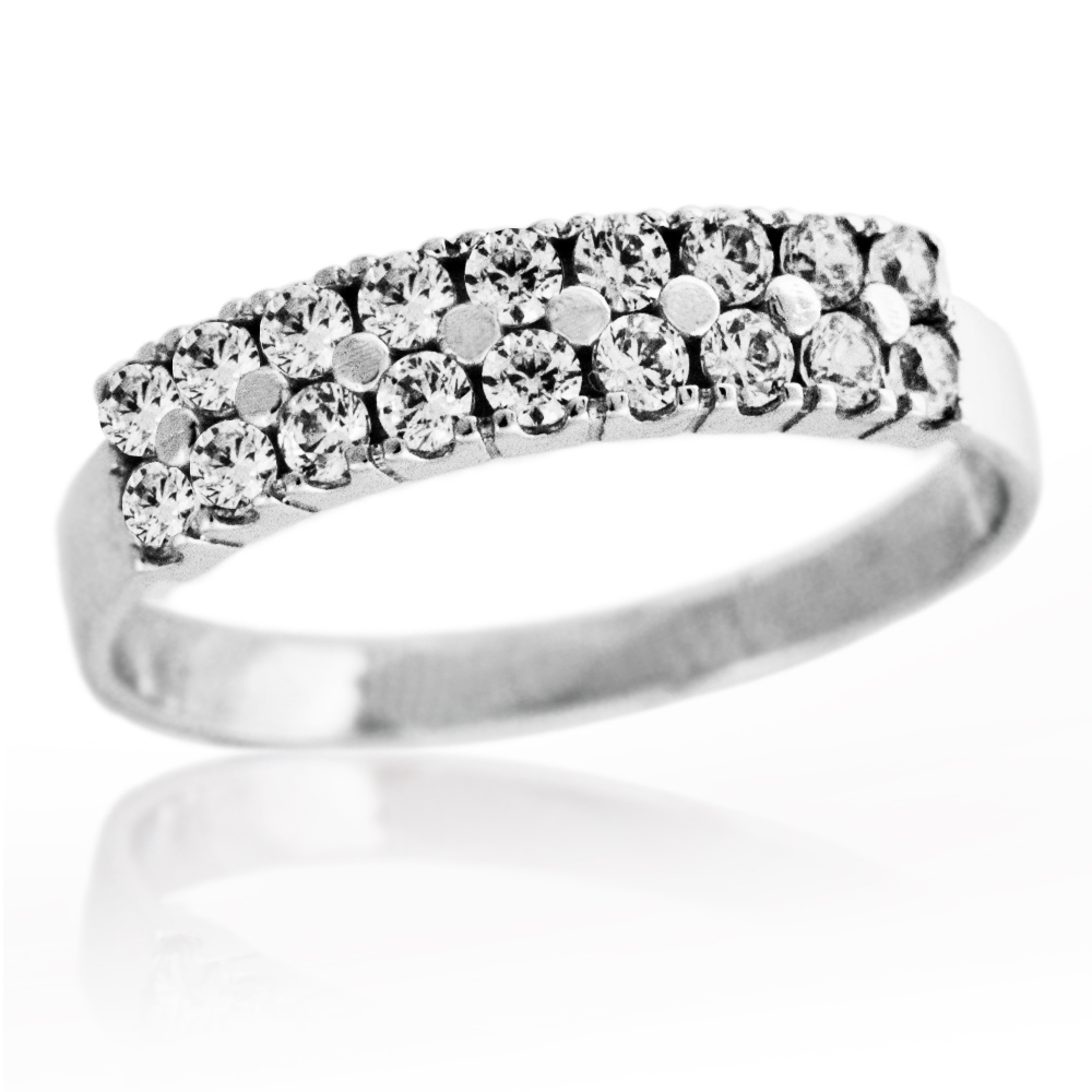 Prstan iz belega zlata s prelepimi kamenčki. Na zalogi v velikosti 49.