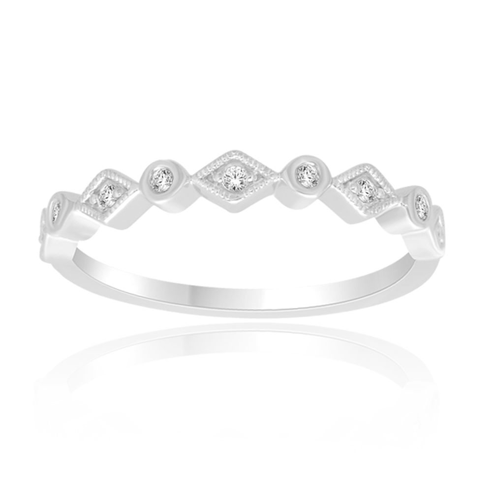 Posebna oblika zaročnega prstana iz belega zlata mu daje prestižen, poseben izgled, ki ga nadgrajujejo še čudoviti briljanti.