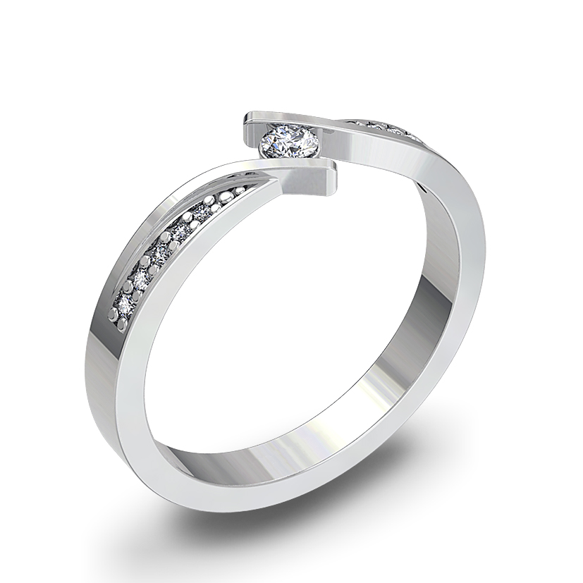 Posebna oblika zaročnega prstana iz belega zlata mu daje prestižen, poseben izgled, ki ga nadgrajujejo še čudoviti briljanti.