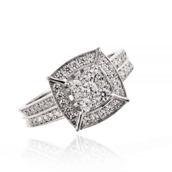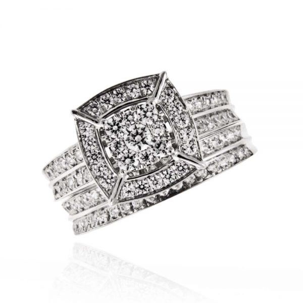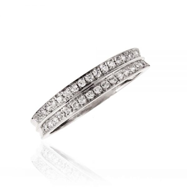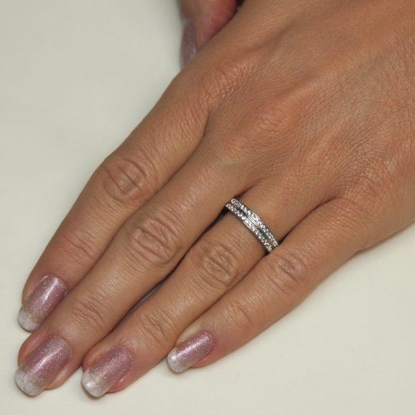 2 čudovita prstana za 4 posebne kombinacije. Drzno oblikovanje z majhnimi kamenčki, ki kljub svoji številčnosti ne dajejo videz prenasičenosti, ampak prepričajo s svojim leskom in predstavljajo sanjski zaročni prstan