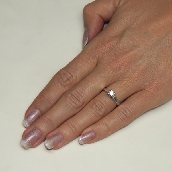 Zaročni prstan iz belega zlata z briljantom bo poskrbel, da ji bo zastal dih.